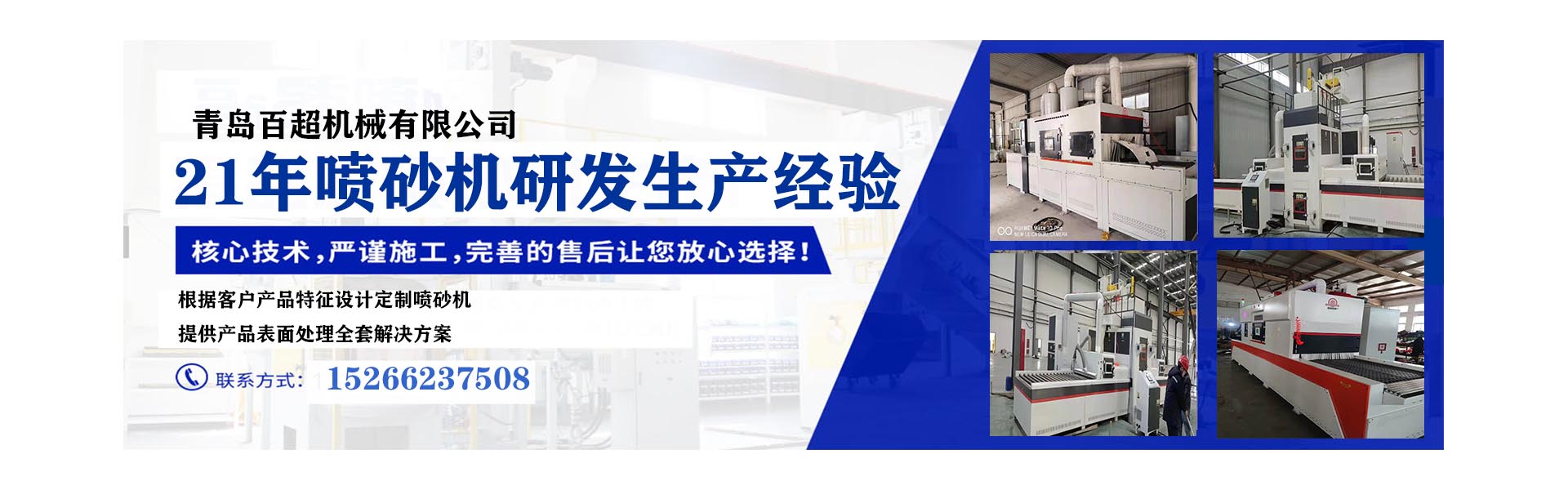 青島百超機械有限公司(原青島超良機械有限公司):屬國家科技型民營企業(yè),高新技術企業(yè),擁有20多項發(fā)明及實用新型專利和軟件著作權,擁有自主“百超”品牌的注冊商標。公司坐落于青島這座美麗的海濱之城,并在2024年迎來了新的篇章——搬遷至即墨區(qū)的前東城村陡溝200號新址,在這里,6000㎡的研發(fā)生產(chǎn)基地正迸發(fā)出無盡的創(chuàng)新活力。公司擁有一支行業(yè)領先的設計、結構、程序工程師團隊,以及專業(yè)的工程技術人員和售后維修工程師隊伍,備有充足的備品備件倉庫,始終堅持真誠、高效的服務理念,為客戶提供全方位的技術咨詢、安裝指導、維修保養(yǎng)等服務。公司主要生產(chǎn)的產(chǎn)品有:①搖擺輸送式自動噴砂機系列;②360°旋轉輸送式自動噴...